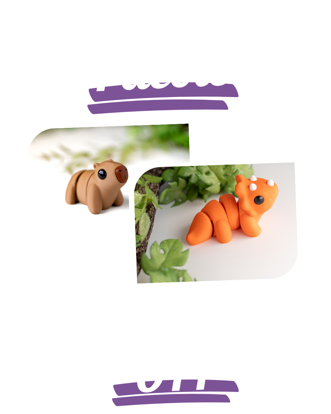 Nossos brinquedos são feitos com PLA, um material biodegradável, atóxico e amigo do meio ambiente. Segurança e responsabilidade em cada peça!